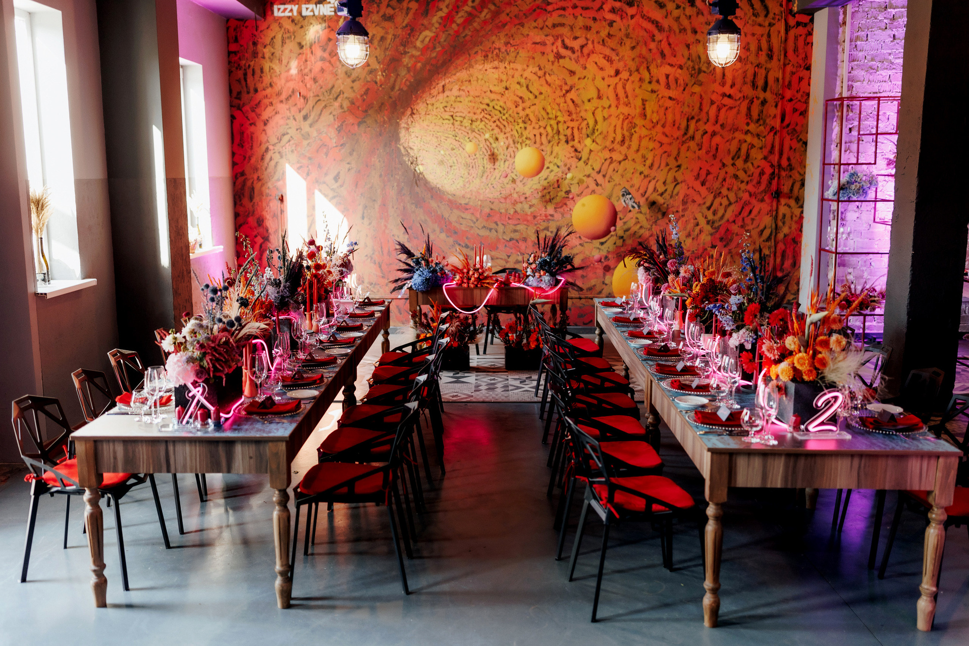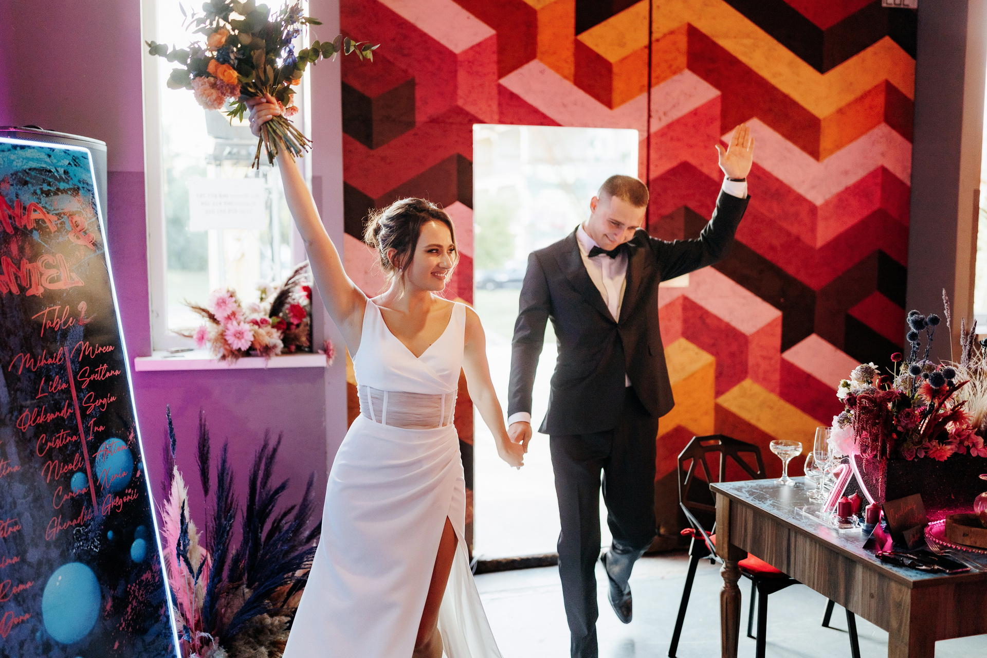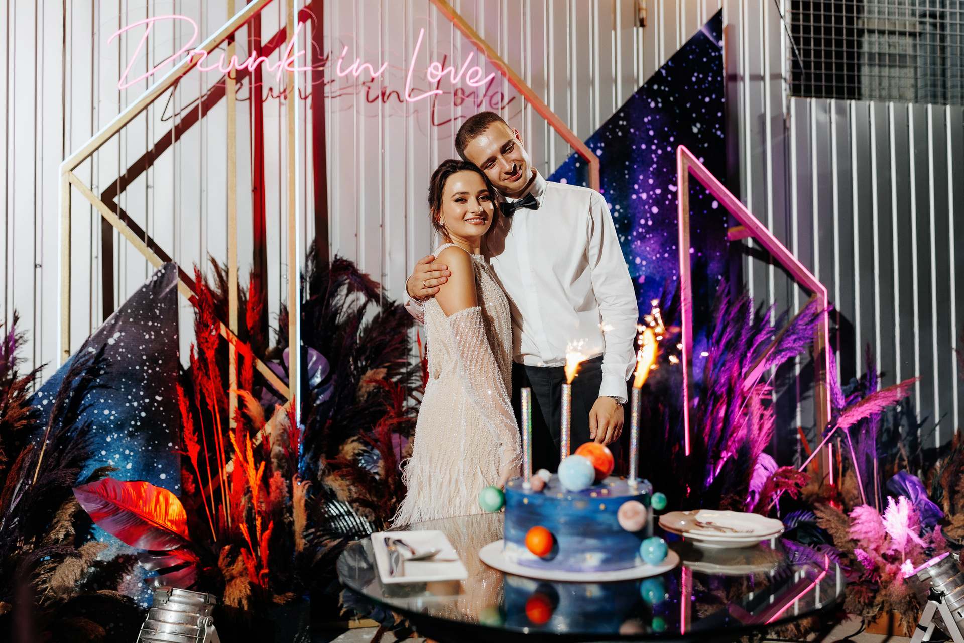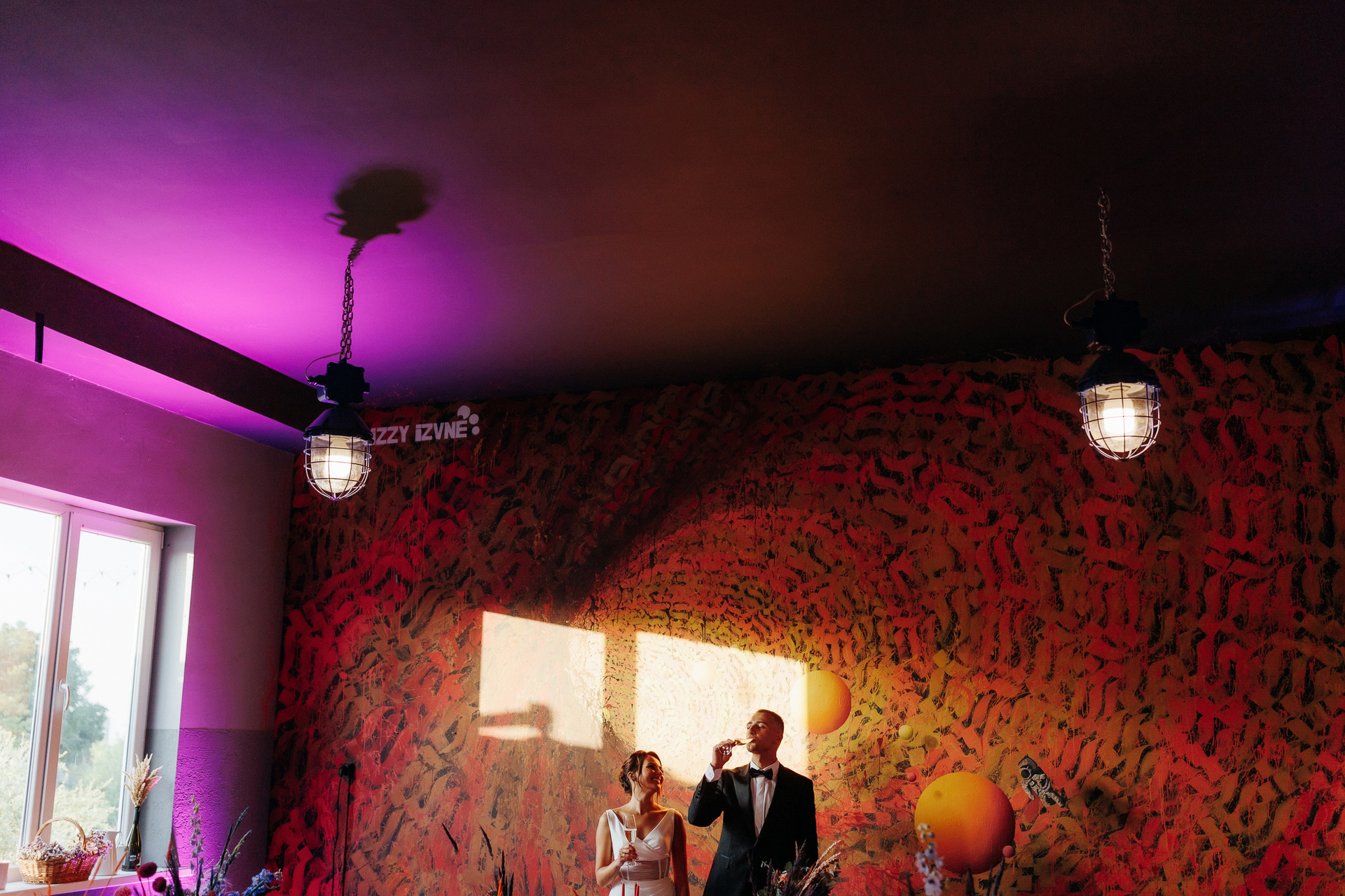 Locația de nuntă a fost una prea deosebită e o vinărie unde mulți aveau să treacă pe alături dar nu și Mirela organizatoarea acestui eveniment care a dorit pentru miri totul cei mai bun și cu un decor fantastic în stil cyber punk și cosmos acolo unde e dragostea lor.