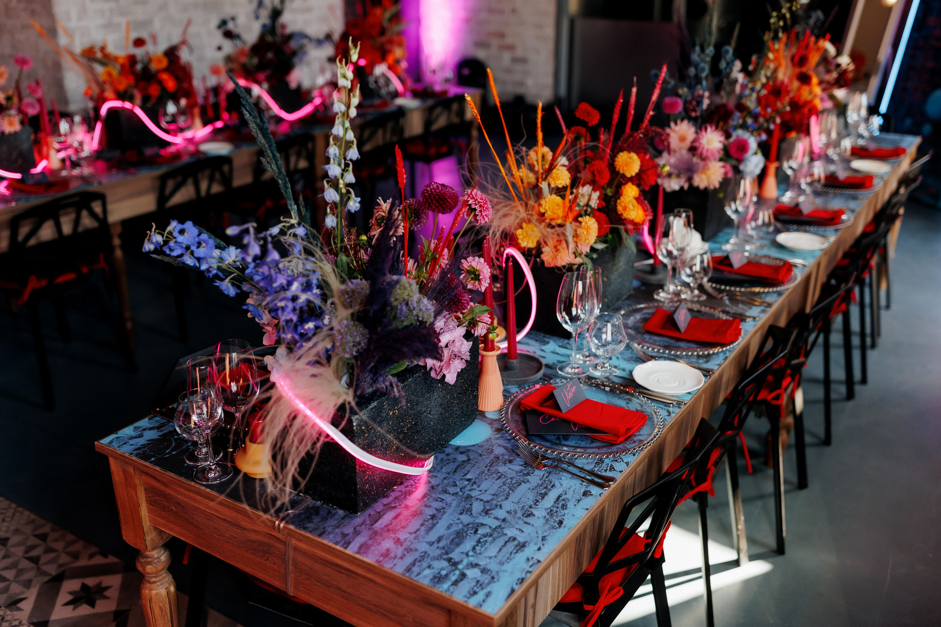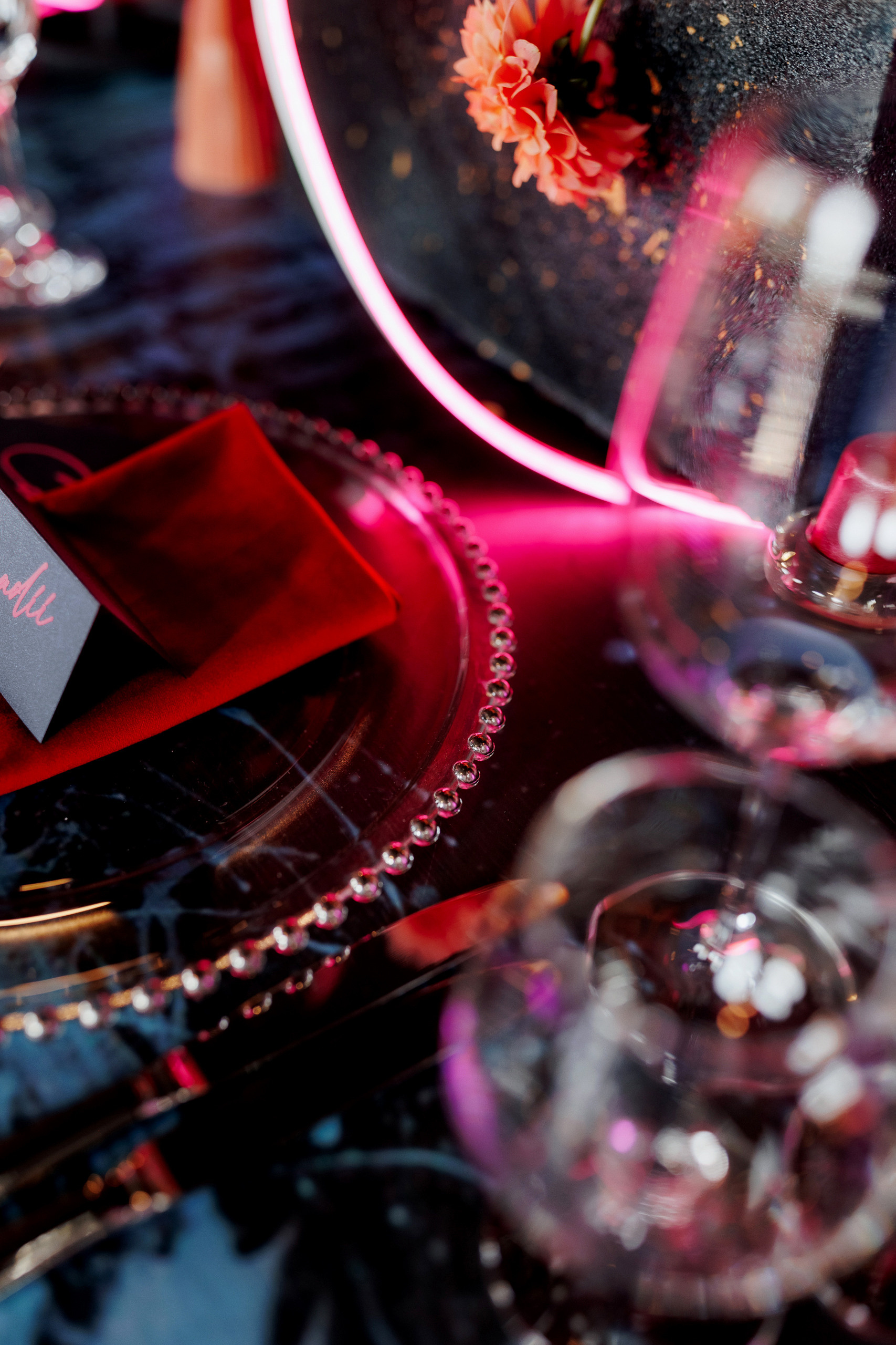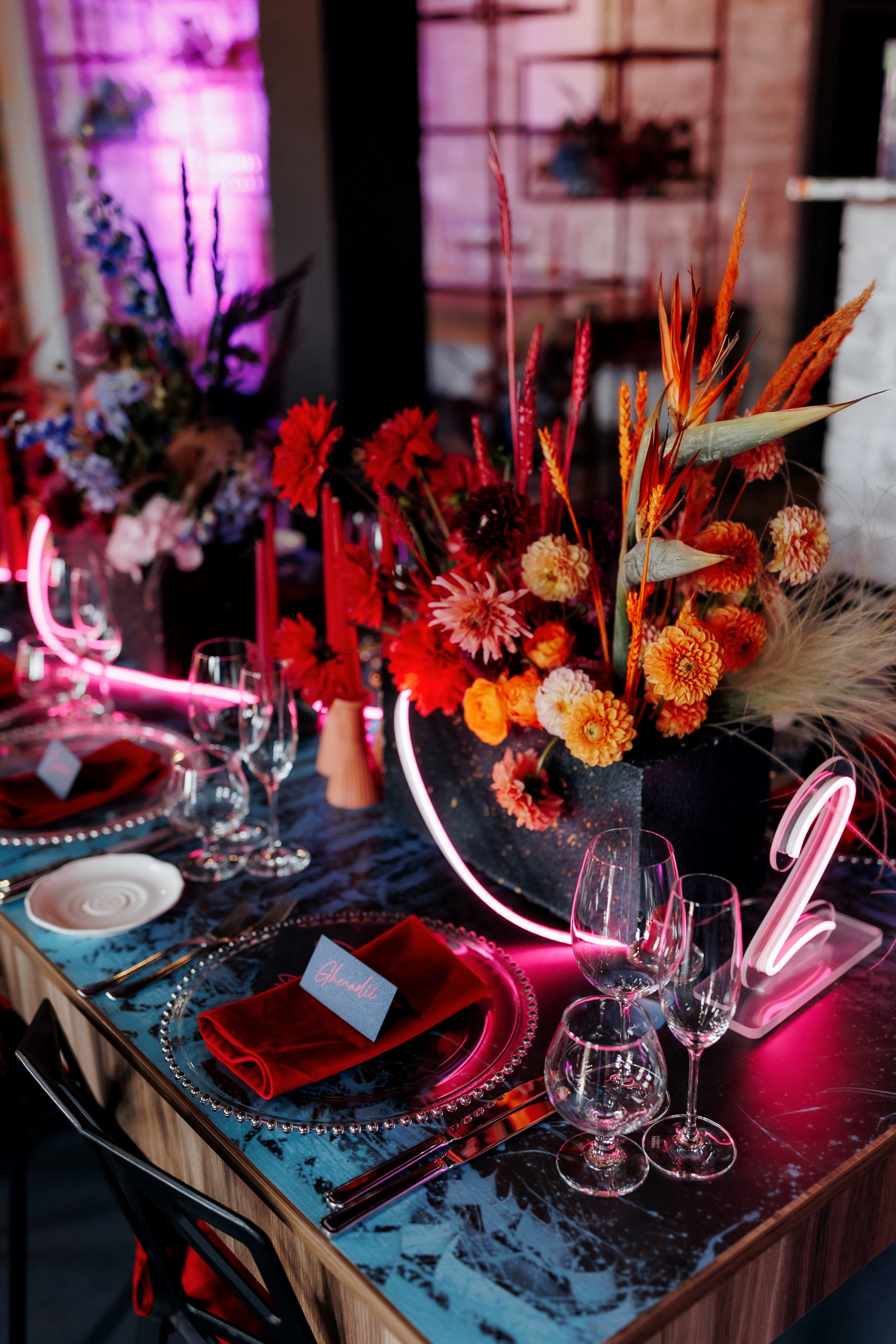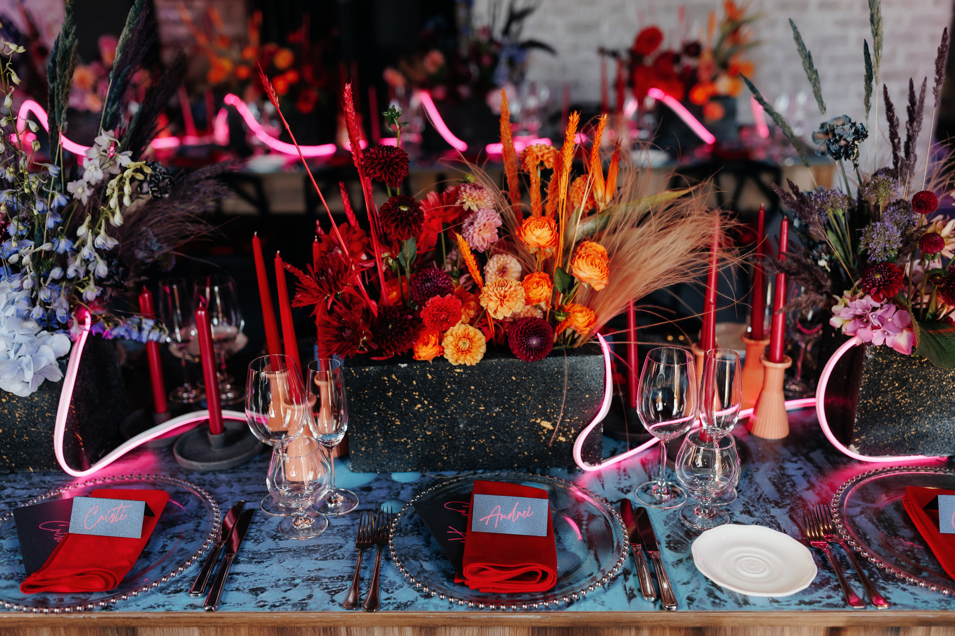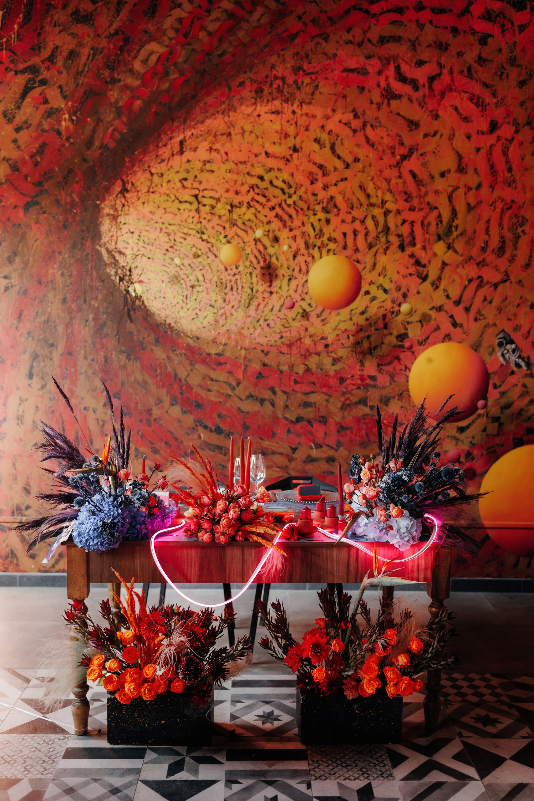 Locația de nuntă a fost una prea deosebită e o vinărie unde mulți aveau să treacă pe alături dar nu și Mirela organizatoarea acestui eveniment care a dorit pentru miri totul cei mai bun și cu un decor fantastic în stil cyber punk și cosmos acolo unde e dragostea lor.